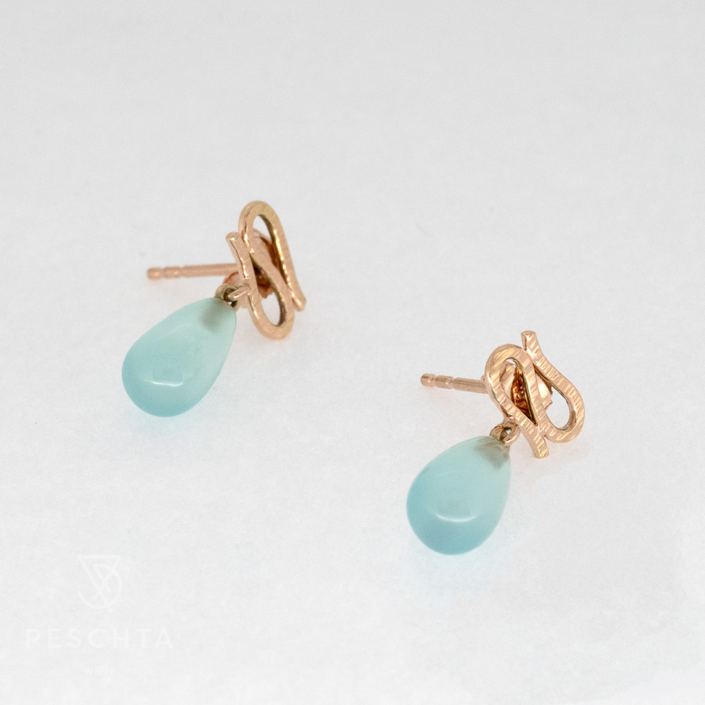 Ohrhänger aus 14 Karat Rosegold, mit je einem Chalcedon Pampel (Farbe: Sea Blue)
