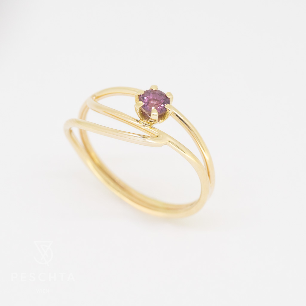 | Beschreibung: | Ring aus 14 Karat Gelbgold, gefasst mit einem Spinell (0,3 ct.) |